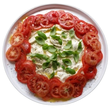 Fresh mozzarella, basil, and tomato sauce